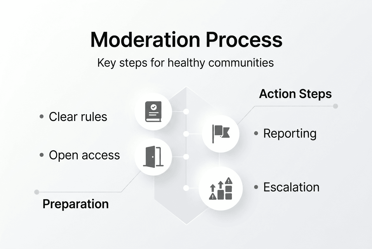 Successful moderation starts before your first user joins. You need clear rules, a prepared team, and accessible processes that set behavioral expectations from day one.