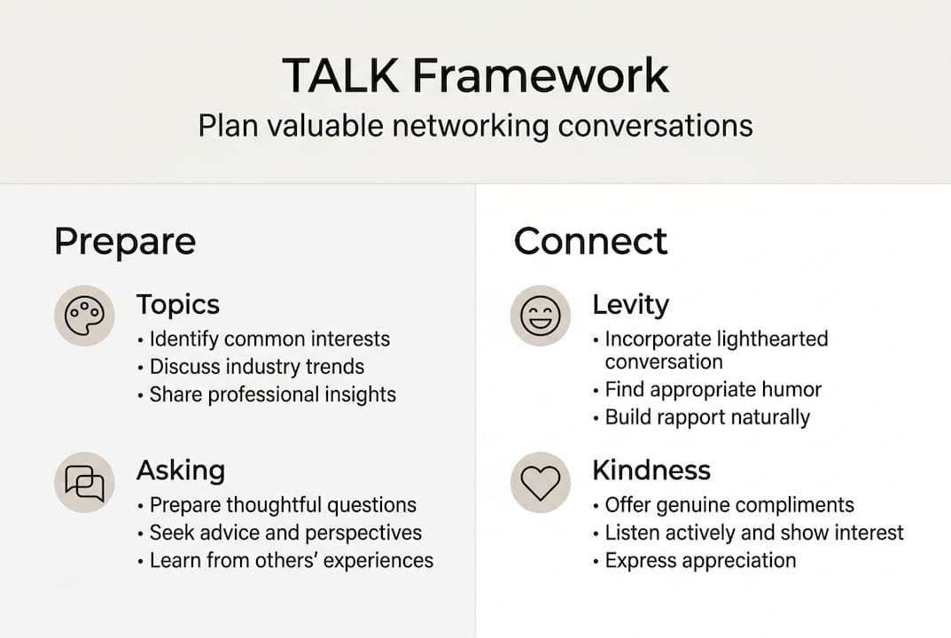 Start with the right mindset. Aim for depth over volume. One substantive conversation beats ten shallow exchanges. Approach every interaction with balance, genuine curiosity, and kindness. You are not there to impress. You are there to connect.