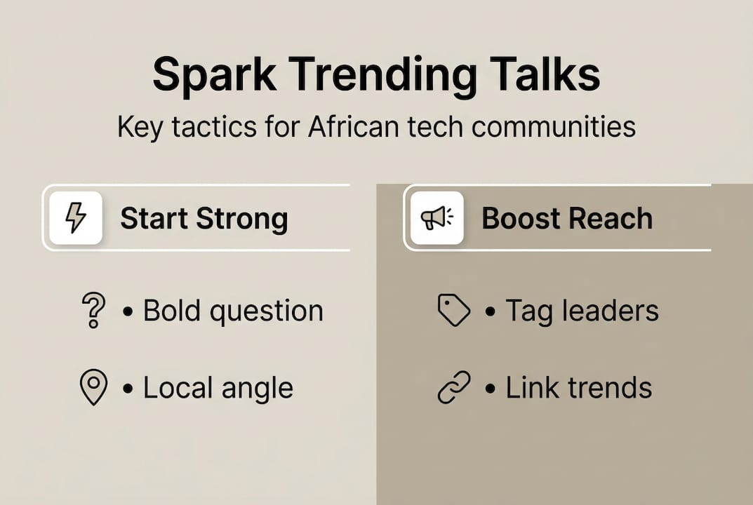 What actually drives traction here is local relevance, micro-trust, and persistence. A founder in Accra who consistently posts sharp takes on fintech regulation will outperform a brand account posting generic startup advice every day. That is not a theory. It is a pattern visible across what makes a conversation trend in professional communities.